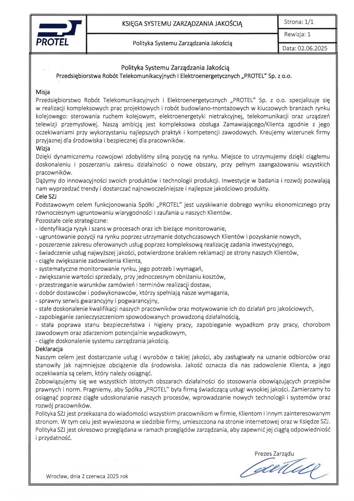 Polityka Systemu Zarządzania Jakością